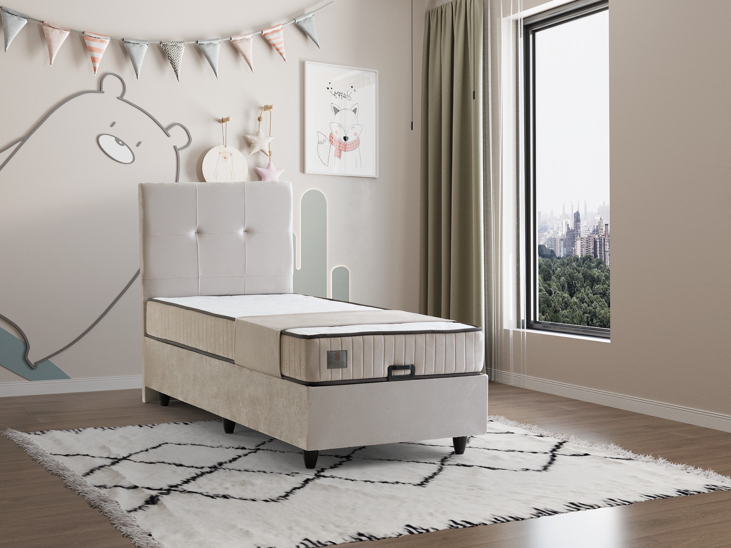 Add a timeless elegance to kids' rooms or guest rooms. The Larissa Cream Single Bed Base & Headboard Set stands out with its elegant button-tufted headboard and functional design. Bring a fresh feel to the room with the perfect harmony of classic and modern lines.