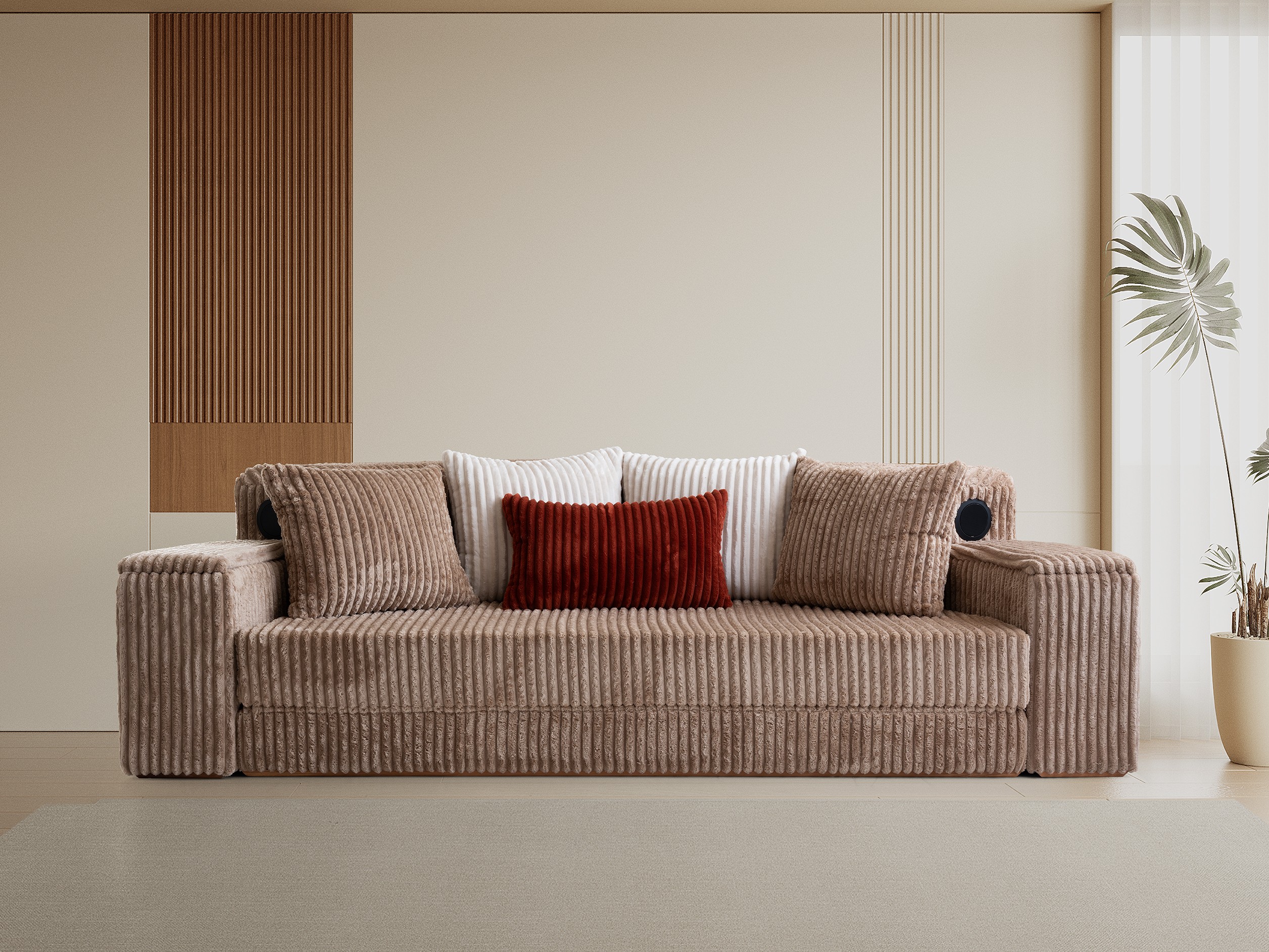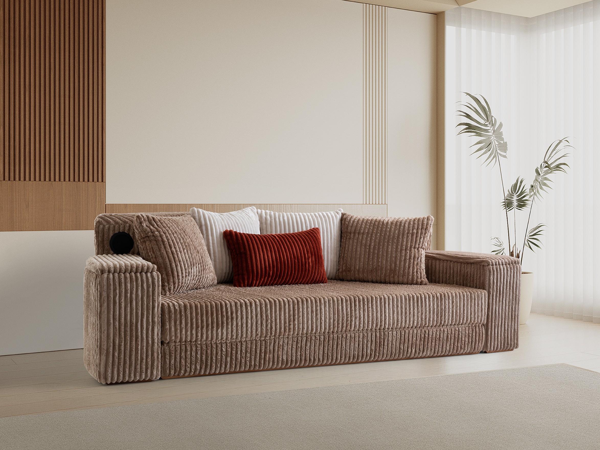 Both a stylish sofa and a massive bed. The Metris Smart Bed Sofa breaks the mold with its modern design and superior functionality. Transform your living room or guest room into a luxury comfort zone in seconds. It will be the focal point of any space with its rich corduroy texture and round bed form.