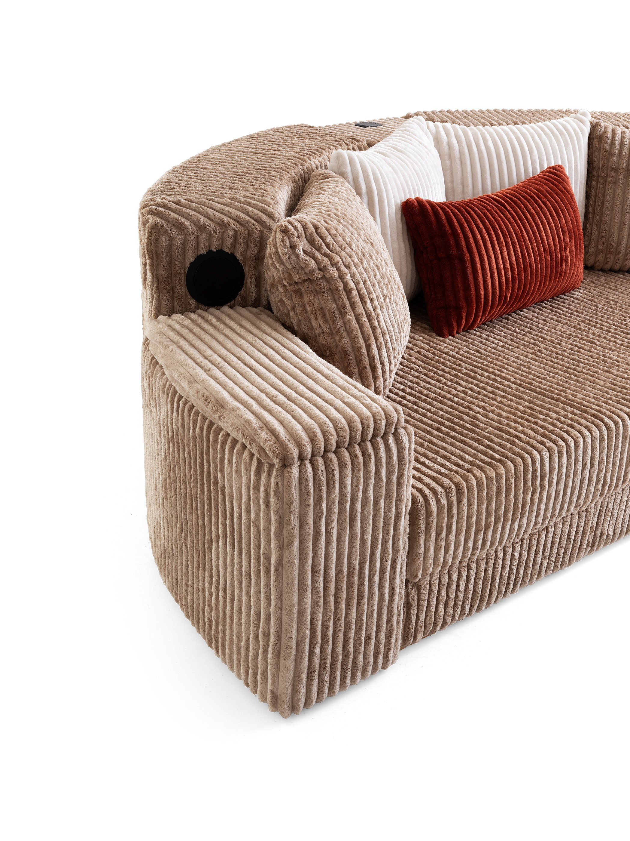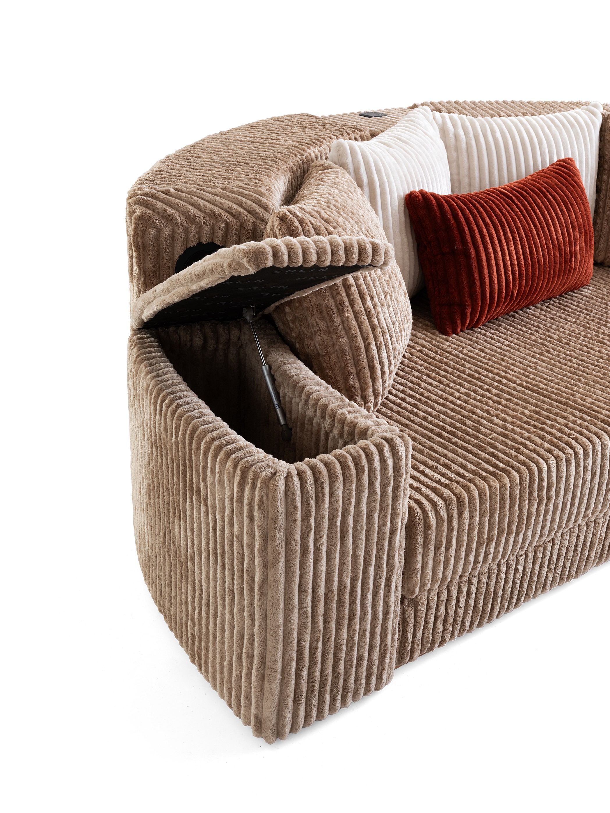 Trendy Corduroy Fabric: The rich, wide-wale corduroy fabric covering the entire surface offers a modern look and a warm touch.