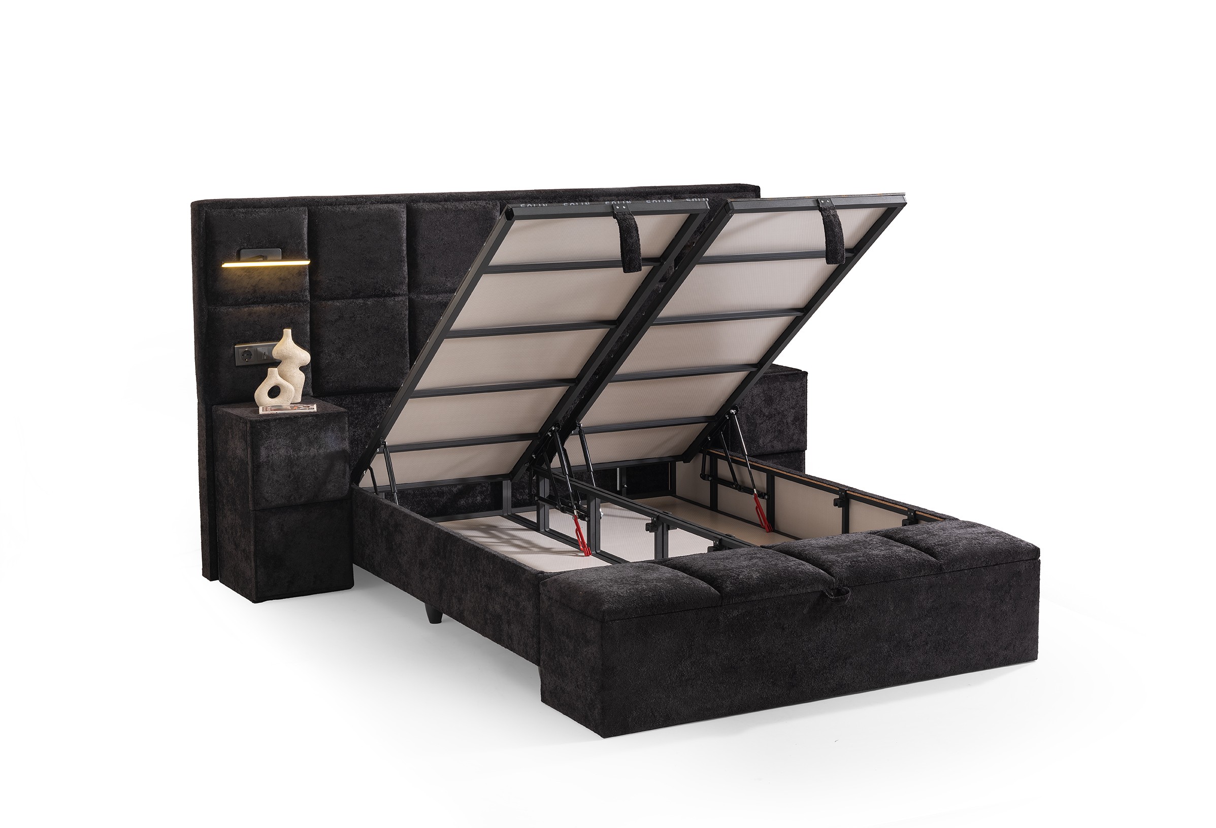 Matching Nightstands & Storage Bench: The included matching nightstands and the spacious storage bench (pouf) at the foot of the bed provide both extra storage and a cohesive, stylish look.
