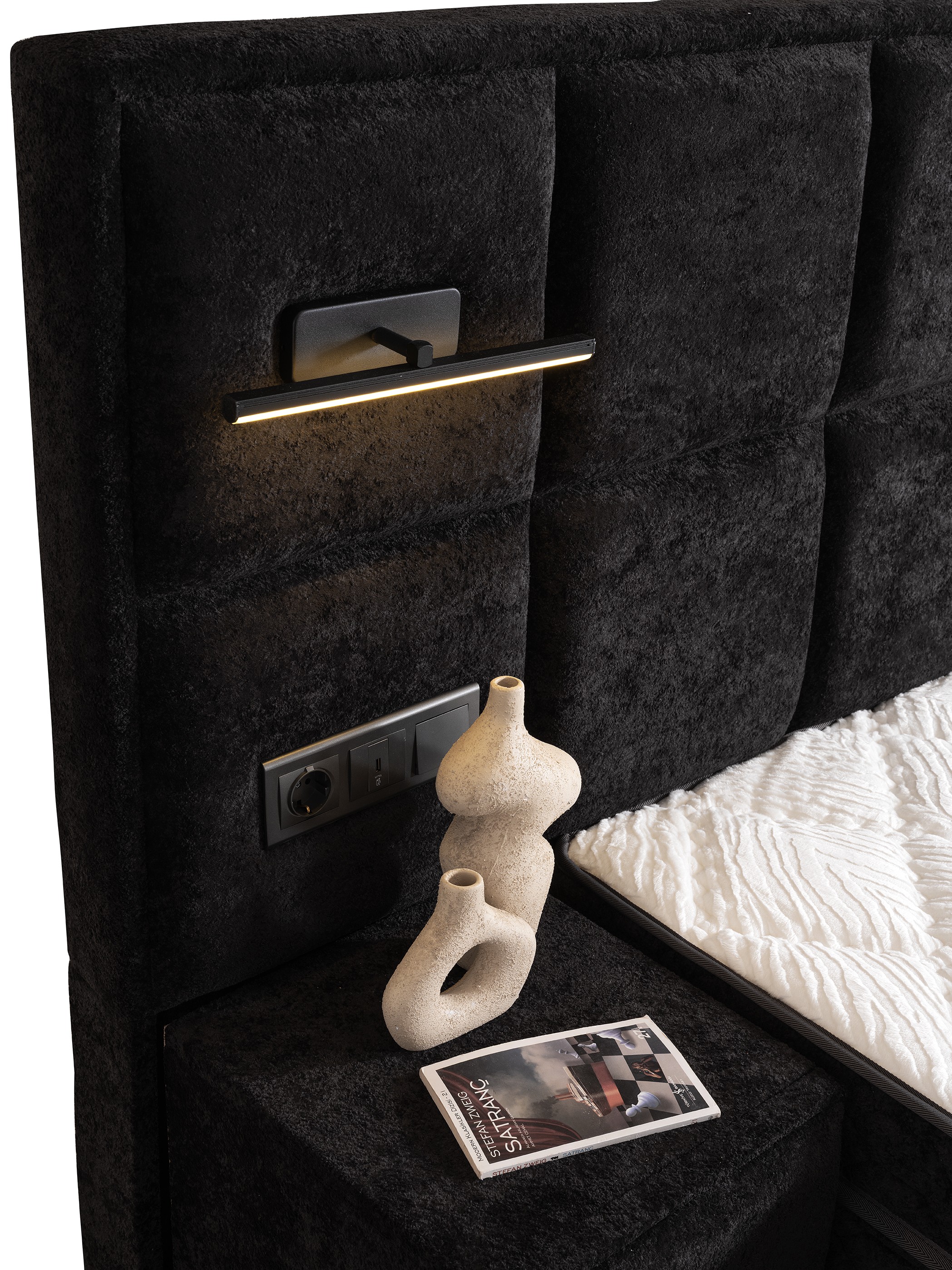 Leave the day's fatigue behind in the bold, luxurious, and sophisticated atmosphere offered by Vanessa Black. Transform your bedroom into a masterpiece.